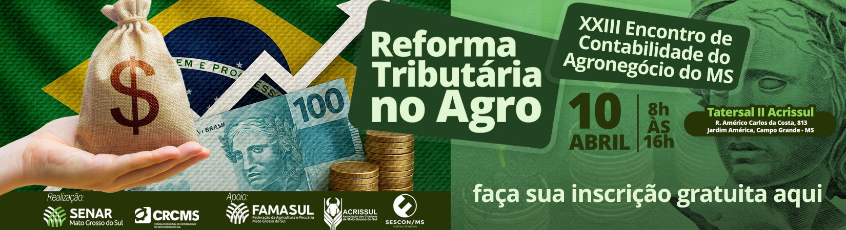 Será, exclusivamente, em formato presencial. Inscrições Gratuitas Aqui! Com o tema “A Reforma Tributária no Agronegócio”, o evento acontecerá no dia 10/04/2026, das 07h30 às 18h, no Tatersal II...