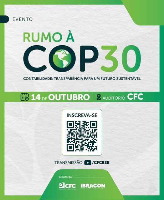 Em um ano decisivo para o futuro do planeta, o Brasil se prepara para sediar a 30ª Conferência das Nações Unidas sobre Mudanças Climáticas (COP 30). Antecipando esse momento histórico, o Conselho Federal de Contabilidade (CFC) e o Ibracon – Instituto de Auditoria Independente do Brasil realizam, no dia 14 de outubro de 2025, o evento “Rumo à COP30 – Contabilidade: Transparência para um Futuro Sustentável”, em Brasília (DF), com transmissão ao vivo pelo canal do CFC no YouTube.