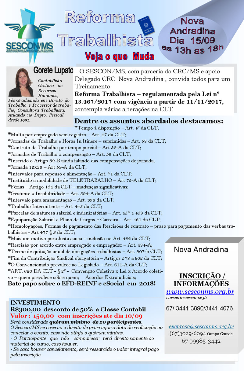 15/09 - Treinamento “Reforma Trabalhista” em Nova Andradina