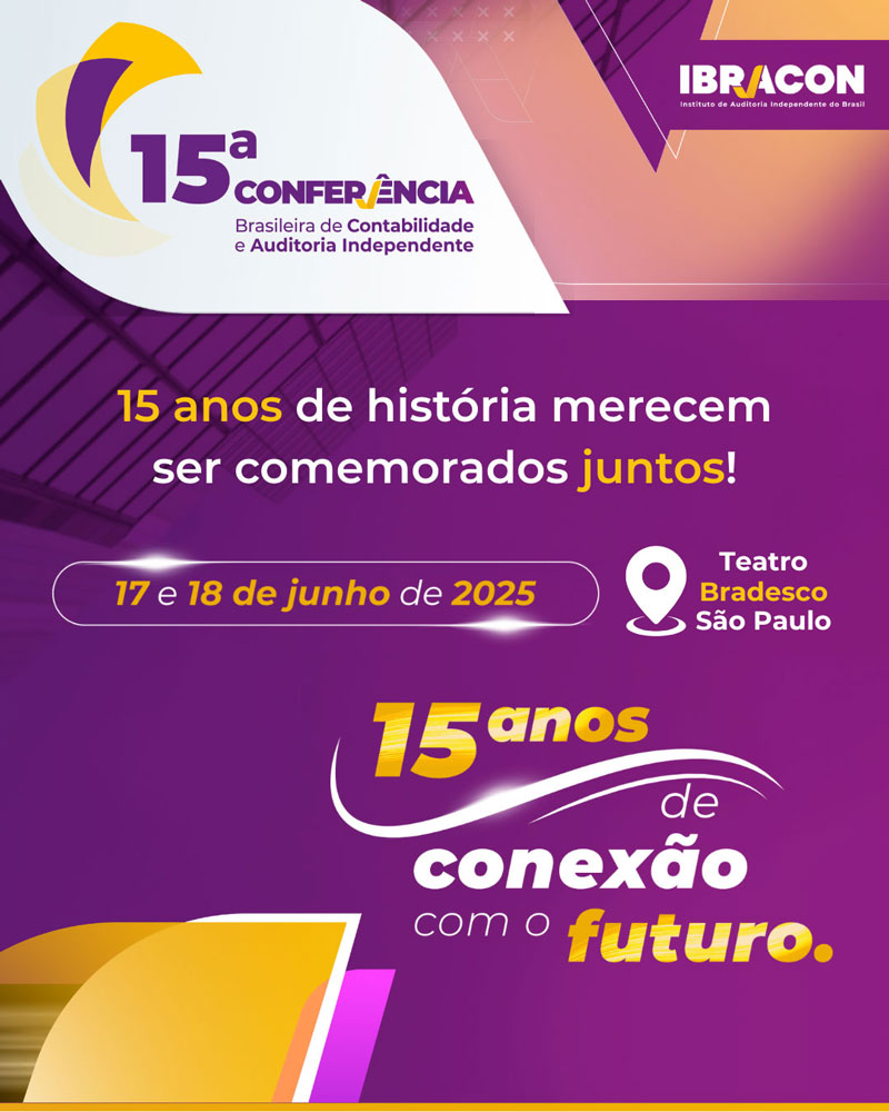 Estão abertas as inscrições para a 15ª Conferência Brasileira de Contabilidade e Auditoria Independente que o IBRACON – Instituto de Auditoria Independente do Brasil realizará nos dias 17 e 18/06/25, em formato híbrido, presencial no Teatro Bradesco, em São Paulo e online.