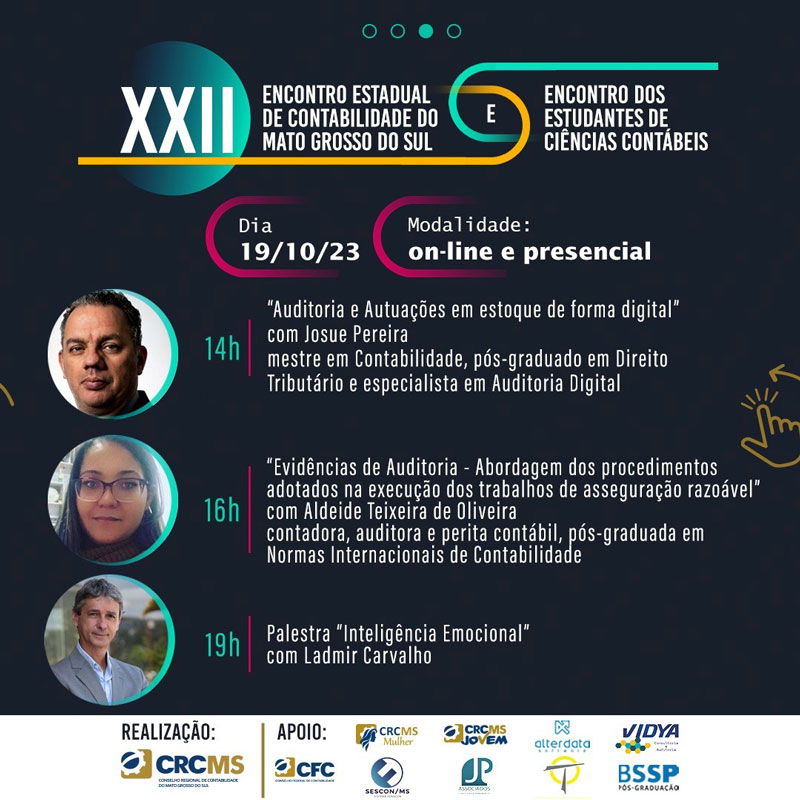 O CRCMS – Conselho Regional de Contabilidade do MS convida a todos para participarem do “XXII Encontro Estadual de Contabilidade do Mato Grosso do Sul” e “XXIX EEECIC – Encontro Estadual de Estudantes de Ciências Contábeis”.