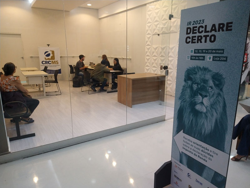 O SESCON/MS – Sindicato das Empresas de Serviços Contábeis e das Empresas de Assessoramento, Perícias, Informações e Pesquisas no MS em parceria com o Shopping Pátio Central e apoio do CRCMS – Conselho Regional de Contabilidade do MS, CRCMS Mulher, CRCMS Jovem e das Universidades Anhanguera, Unigran, Insted e UCDB está realizando a ação “IR 2023 – Declare Certo”.