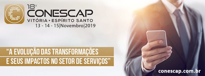 18ª CONESCAP – O maior evento para os Empresários de serviços do País acontece em Vitória/ES, de 13 A 15 de novembro de 2019. Realização FENACON e SESCON Espirito Santo. Informações e inscrição www.conescap.com.br