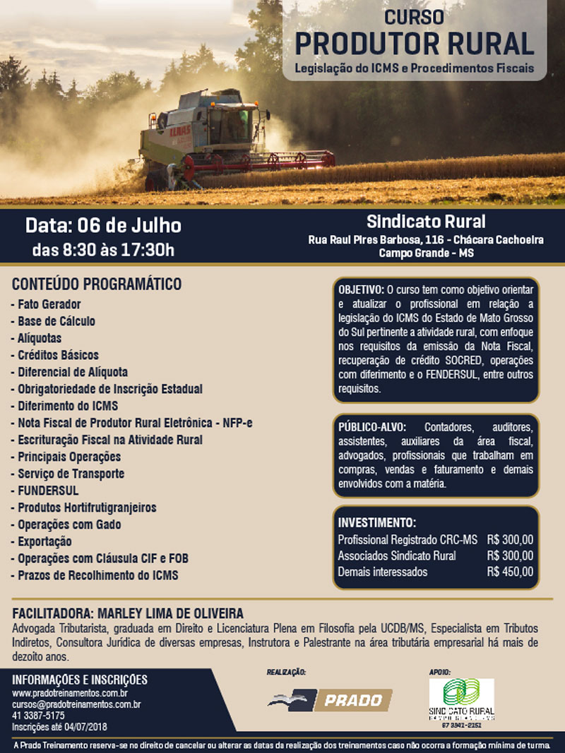 Campo Grande: Curso “ICMS Produtor Rural” Dia 06/07