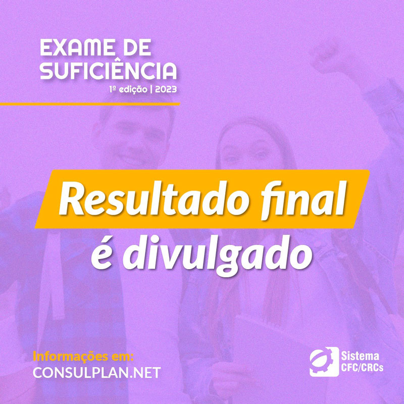 O Conselho Federal de Contabilidade (CFC) comunica que já está disponível para consulta o resultado final da primeira edição de 2023 do Exame de Suficiência realizado no dia 07/05, em todos os estados brasileiros e no Distrito Federal (DF), na modalidade presencial.