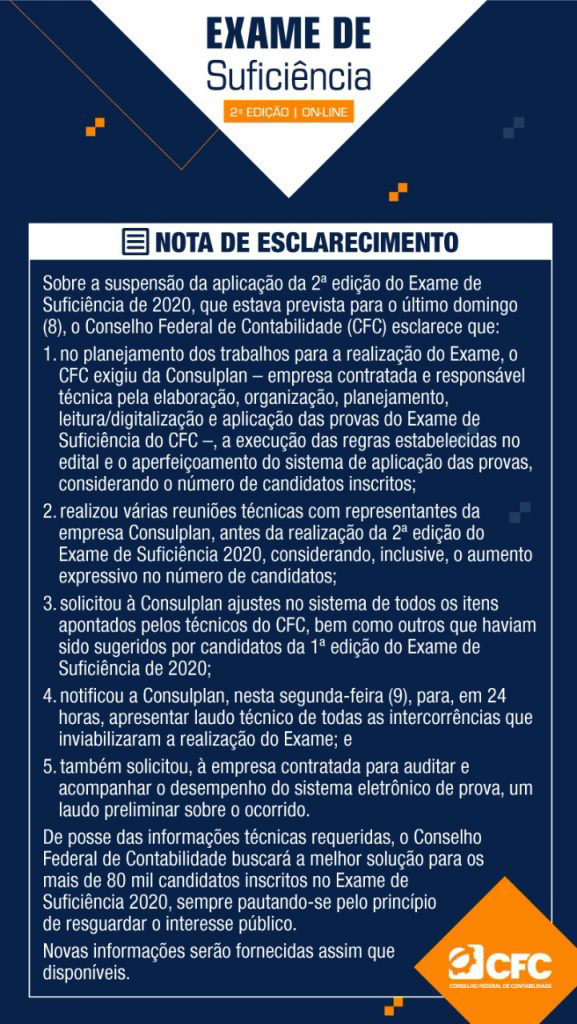 Nota de Esclarecimento: Exame de Suficiência 2020.2