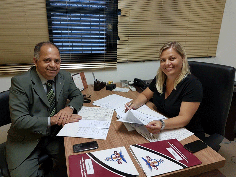A Contadora Iara Sônia Marchioretto, Presidente do CRC/MS – Conselho Regional de Contabilidade do MS, recebeu, no dia 09/01/18, a visita do Coordenador Adjunto da Câmara de Fiscalização, Ética e Disciplina do CFC – Conselho Federal de Contabilidade, Contador Carlos Rubens de Oliveira.